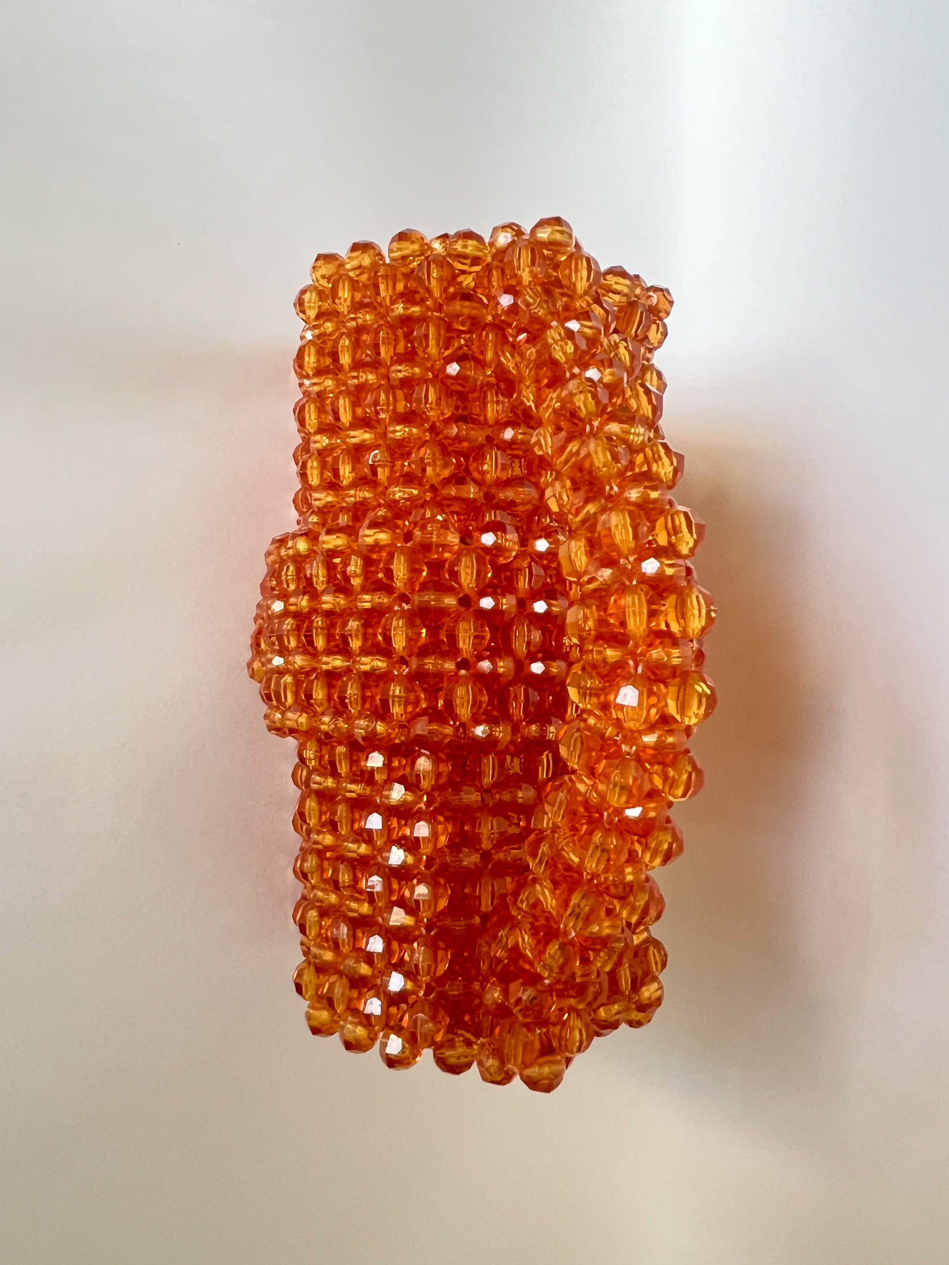 Vaika es un pequeño cofre hecho de cuentas brillantes. Una silueta rectangular, tapa estructurada y un detalle superior que abraza el cierre. Mini, luminosa y lista para guardar tus tesoros esenciales.